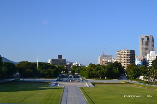 Peace Memorial Park adalah alasanku untuk pergi ke Hiroshima. Kota yang memiliki kenangan kuat dengan kemerdekaan Indonesia ini menarik untuk dikunjungi karena pembangunannya yang cukup pesat dan kebangkitannya sejak dijatuhi bom pada 6 Agustus tahun 1945. Karena itu aku memilih lokasi penginapan di J-Hoppers yang menurut info hanya berjalan kaki selama 10 menit sampai taman memorial ini