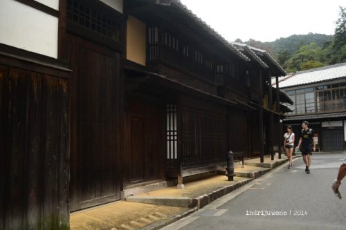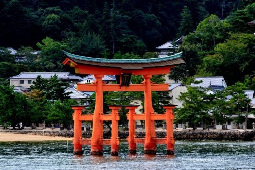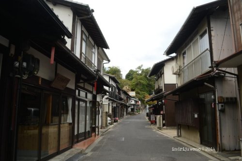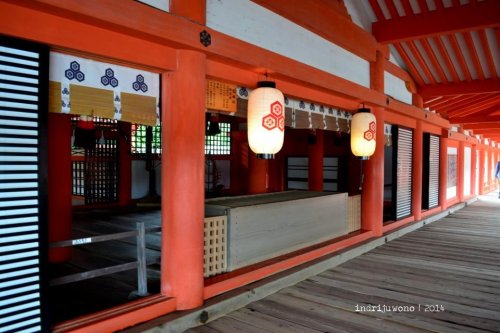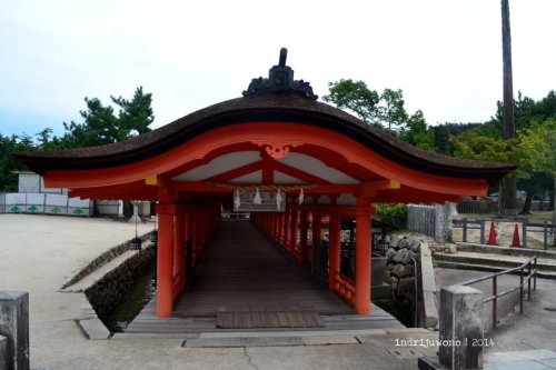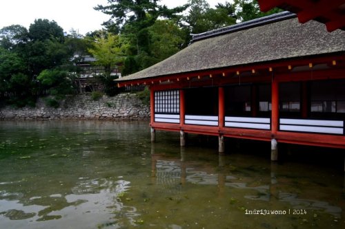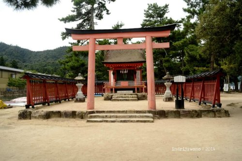 Aku menyusuri jalan di belakang museum itu yang ternyata adalah perkampungan asli dengan rumah-rumah yang mesih terbuat dari kayu. Beberapa lokasi memang berubah fungsi menjadi restoran, tapi bentuknya masih sama. Langkahku terayun ke satu tanjung kecil berpasir putih tempat Kiyomori Shrine, salah satu kuil privat tempat Taira-no-Kiyomori berdoa. Dengan posisinya yang lebih dekat dengan O-Torii, memudahkan untuk mengambil gambar lebih bagus lagi.