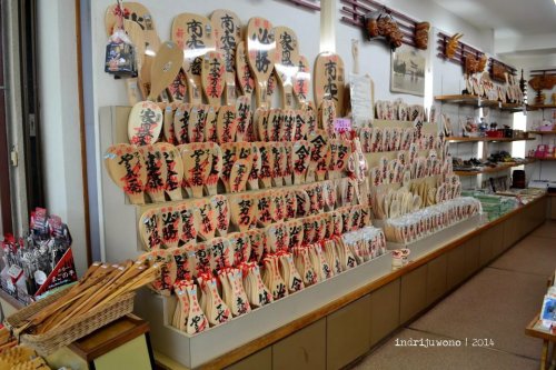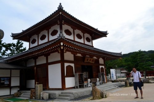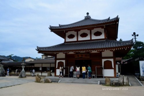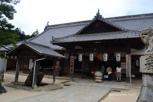 Selepas dari pintu keluar kuil yang berdiri di atas air tersebut aku mampir sebentar ke Daigaji Temple yang dibangun untuk menggantikan beberapa bagian Itsukushima Shrine yang saat itu sedang direstorasi. Tepat di depannya terdapat Treasure Hall, tempat penyimpanan harta kuil dan klan Heike. Di dalam bangunan yang didalamnya alas kaki harus dilepas ini terdapat banyak lukisan, handycraft, dan patung-patung yang menggambarkan kejayaan Taira-no-Kiyomori di masa lampau.