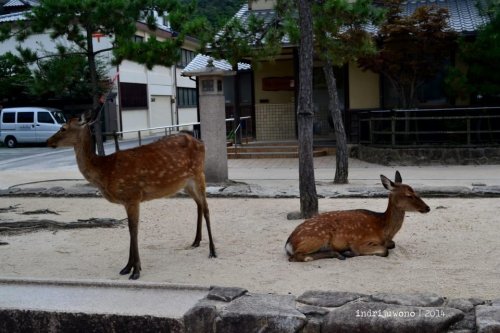 Wah, ternyata di Miyajima itu ada rusa berkeliaran juga? Iih, lucu dong!
