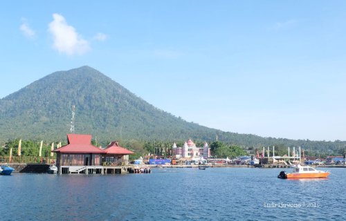 Aku memilih duduk di belakang, bersama tujuh orang lainnya di bawah udara terbuka dan ditemani suara mesin yang menderu memecah air. Selain karena kalau di dalam aku takut mabuk laut, duduk di udara terbuka membuatku leluasa menikmati pemandangan yang berada di sekeliling. Memandangi pulau Ternate yang perlahan-lahan menjauh dengan gunung Gamalama yang menjulang tinggi, dan laut teduh yang mengelilingi.