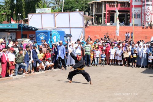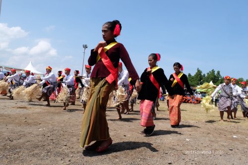 Setelah meletakkan ransel jingga di rumah Bu Heni, Indah mengajakku untuk mellihat Festival Teluk Jailolo yang tadi dilihatnya di pelabuhan. Kami naik bentor lagi ke tanah lapang di samping pelabuhan untuk menikmati berbagai atraksi. Usai sambutan dari bapak Bupati, dilanjutkan dengan berbagai tari-tarian yang dipertunjukkan oleh anak-anak SMA. Sepanjang jalan banyak sekali yang menyapa Indah. Rupanya beberapa teman SMA-nya ada yang sudah bekerja di Pemda yang menyelenggarakan festival ini. Tak seperti tahun lalu yang katanya begitu meriah, tahun ini tidak terlalu banyak wisatawan yang berlalu lalang di sekitar lokasi festival. “Mungkin nanti malam, kak. Kalau artisnya datang,” sela Indah ketika kumintai pendapatnya.