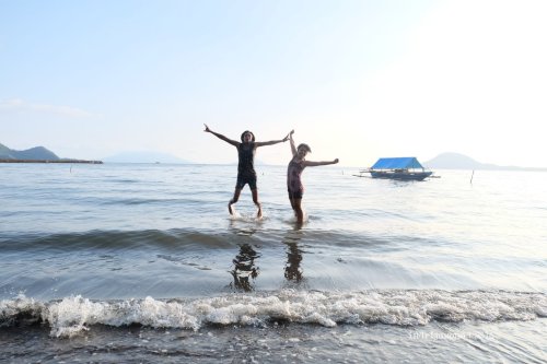 Sepanjang pantai ini hanya ada kami berempat. Karena panas tengah hari, kami memilih untuk berlari-larian dan main pasir saja dan tidak masuk air. Pantai ini lumayan panjang dengan pemandangan bukit-bukit di sekitarnya. Seandainya menikmati matahari terbenam di sini, pasti bakal terasa indahnya. Beberapa perahu nelayan lewat dan melambaikan tangannya pada kami. Mungkin mereka jarang melihat ‘turis’ yang tersesat hingga kemari, ya.