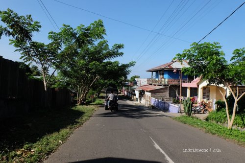 “Kakak sudah pernah makan papeda? Yuk, sesudah ini ke rumah nenekku! Tadi aku telepon mengabarkan minta dimasakkan papeda dan ikan kuah kuning,” kabar Indah ketika kami kembali berboncengan naik motor. Jadi kami langsung melanjutkan perjalanan dengan motor ke desa di ujung selatan Jailolo menuju rumah neneknya Indah di daerah Guaeria. Wah, benar-benar pengalaman yang menyenangkan karena bertemu dengan orang-orang sebaik ini. Rasanya perjalanan sendirian ini bakal berkesan banget.