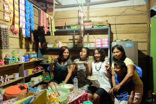 Kami mulai bercakap di kapal yang melaju. Diawali dengan pertanyaan, “Mau ke mana? Aslinya dari mana?”, pada perempuan mungil yang asyik menjepretkan kameranya ke segala arah ini. Ibu Heni, yang baru pulang dari tanah Jawa bersama putrinya, Indah, yang baru saja lulus dari sebuah universitas di Jogja, penasaran dengan apa yang hendak kulakukan di Halmahera.