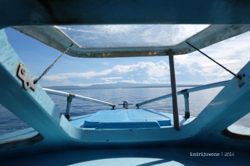 Perjalanan selama tiga jam itu pun tidak lagi terasa lama karena kami menjadi akrab satu sama lain di kapal yang meloncat-loncat di tengah ombak. Aku bercerita bahwa aku baru saja tahu bahwa ada pesawat Wings dari Morotai ke Ternate yang terbang sekali sehari dari salah satu penumpang yang berada di pelabuhan tadi. Hore, akhirnya aku tahu bagaimana cara kembali dengan cepat supaya tidak tertinggal pesawat ke Jakarta hari Minggu tiga hari ke depan. June dan Friandry berencana ke Pulau Dodola hari itu dan mengajakku serta karena mereka akan pulang besok dan sudah punya tiket pesawat. Karena tidak ada sinyal, maka aku mengurungkan waktu untuk browsing tiket pesawat hingga tiba di Morotai.