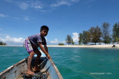 Aku agak panik dan setengah berlari melewati pasir, kejar-kejaran dengan air laut yang mulai menenggelamkan warna pasir. Untunglah aku masih sempat melalui jalur sepanjang 100 meter itu dengan kaki kering. Kalau saja aku terlambat setengah jam, bisa-bisa tak bisa kembali ke dataran utama. “Nggak apa-apa koq, nanti tinggal dijemput dengan perahu,” demikian ujar bapak pengemudi ketinting melihat kami yang berlarian hingga meja-meja di tepi pantai.