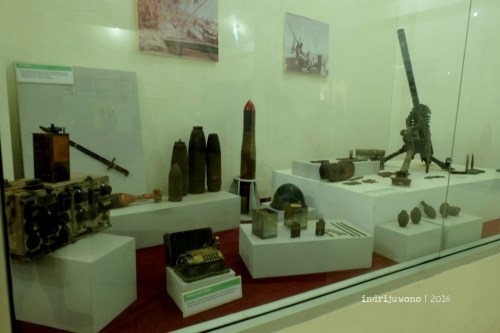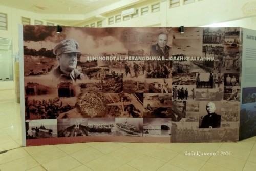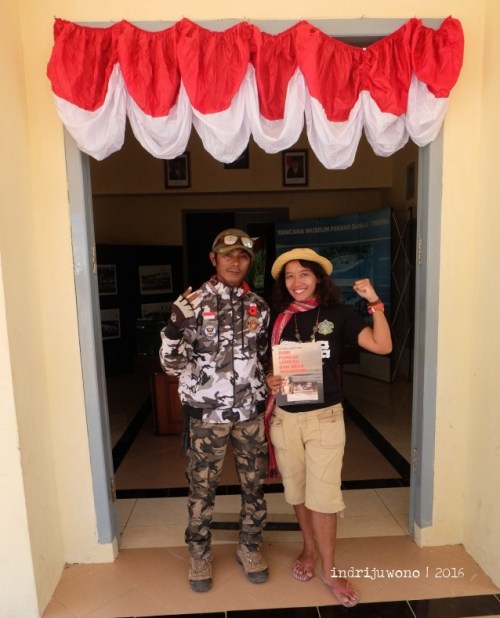 Diantar Pak Uci, kami menuju Museum Morotai yang banyak berisi barang-barang peninggalan perang dunia II di sini. Bertemu Muhlis Eso, seorang guru sejarah sekaligus guide museum, beliau sangat paham dengan cerita-cerita peninggalan perang di sini. Bahkan Pak Muhlis ini juga mengumpulkan aneka besi-besi peninggalan perang itu di rumahnya dan menawarkanku untuk mampir ke sana juga.