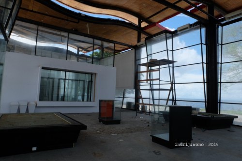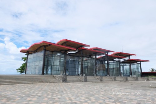 Dua bangunan museum di kiri dan kanan monumen ini berdinding kaca dengan atap yang menggambarkan gelombang-gelombang laut. Nampak jelas pernah menjadi tempat eksebisi, bekas instalasi bisa terlihat jelas dari luar lewat bidang-bidang transparan yang mendominasi. Mungkin beberapa koleksi Morotai akan dipamerkan di sini, hanya saja menunggu waktunya yang tepat saja. Sangat disayangkan bangunan sebagus dan semodern ini tidak dimanajemen dan dimanfaatkan dengan maksimal.