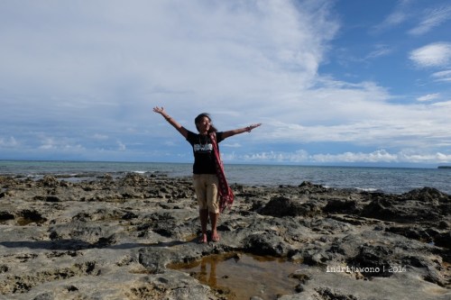 Pemandangan di sana indah sekali, pergantian dari pantai-pantai berpasir lalu berubah menjadi pantai-pantai karang, hingga sudut menyempit karang dan laut yang tenang di barat dan bergejolak di timur. Menuju ke sisi timur pun terasa angin yang kuat menampar-nampar hingga rambutku beterbangan. Benar katanya, di titik sini seharian saja dan menunggu sunrise hingga sunset dari balik cakrawala yang jauh.