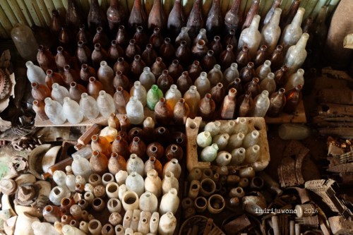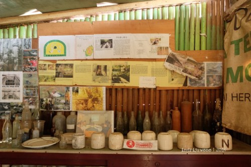 Sesuai janji dengan Pak Muhlis, kami mampir rumahnya yang memiliki banyak sekali koleksi peninggalan Perang Dunia II yang tersebar di pelosok-pelosok Morotai. Mulai dari botol-botol beling, selongsong peluru, gambar-gambar hingga sepeda tersusun rapi di biliknya yang mungil. Kami tidak bertemu lagi dengannya karena ia sedang mengantar rombongan lagi berkeliling.