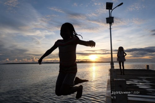 Menjelang senja, aku menghabiskan waktu lagi di dekat pelabuhan sambil menyaksikan anak-anak bermain berlompatan dari dermaga. Wajah mereka begitu polos dan riang, menunggu berakhirnya hari sambil berulang kali melompat tanpa sedikitpun rasa takut. Aku berterima kasih pada Pak Uci yang sudah mengantarkanku seharian hingga saat keberangkatanku dengan kapal jam 20.00. Kapal? Iya, akhirnya aku bisa kembali ke Ternate menumpang kapal penumpang dalam perjalanan 10 jam, nanti.