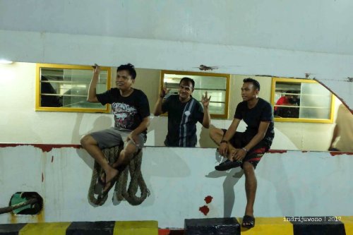 Bahagianya hidup di Indonesia yang orangnya sangat ramah. Senyum senantiasa menghiasi wajah orang-orang di kapal yang tak segan mengobrol hingga waktu lelah sembari berdiri di geladak menikmati bintang yang berlarian di angkasa.