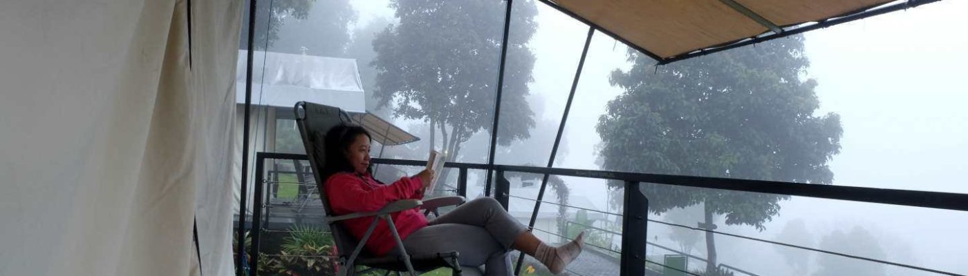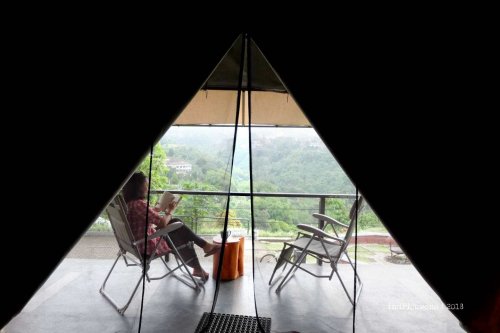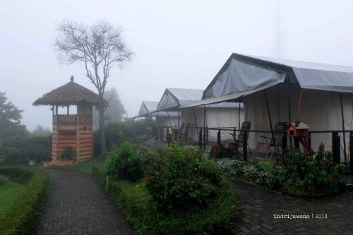 Tenda kami berdiri di atas pelat beton yang ditopang oleh tiang-tiang beton juga dengan pondasi setempat di tanah. Tiang-tiang tenda dari besi pun perdiri di atas tumpuan-tumpuan tadi. Karena area tutupannya diangkat seakan rumah panggung, maka kondisi tanah asli masih bisa menyerap air yang menjadi laluan di lembah ini. Pada bagian depan yang menghadap pegunungan terlindungi dengan railing besi yang kokoh, dan ditambah dua kursi untuk bersantai bermalas-malasan sambil membaca atau minum teh.