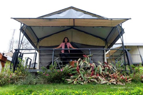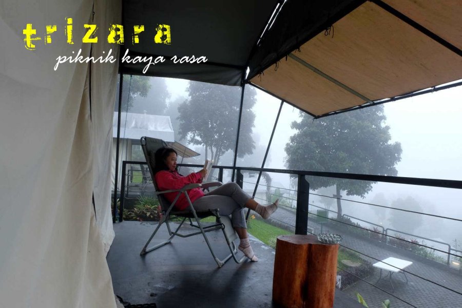 Berhubung sudah mendengar cerita dari teman-teman betapa asyiknya glamping di Trizara, di mana kita akan tinggal di tenda-tenda, jadi aku sangat penasaran bagaimana rasanya bertenda selama beberapa hari di sini. Dan ternyata benar saja, hampir semua bangunan di sini non permanen alias memang dinaungi oleh tenda. Apalagi dengan berbagai aktivitas di antara waktu-waktu yang kami habiskan di kehijauan di antaranya, membuat betah dan pikiran pun menjadi segar. Arti kata Trizara sendiri adalah taman di surga dalam bahasa Sansekerta India.