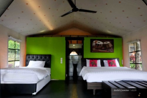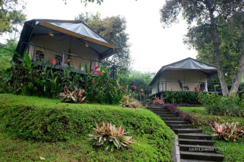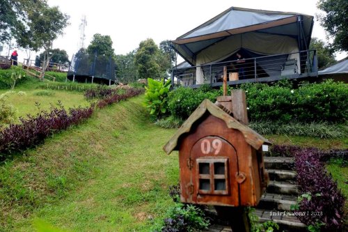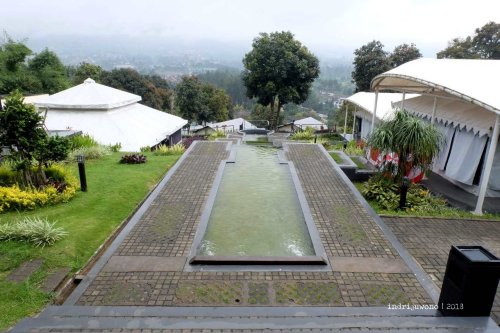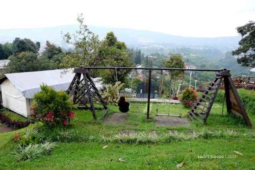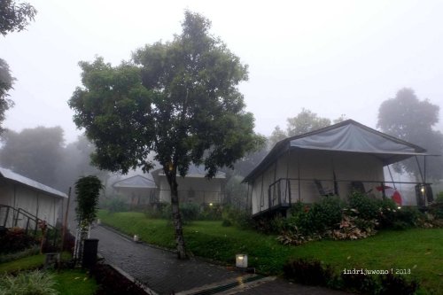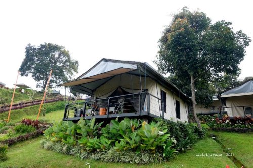 Kondisi tanah dengan kontur yang berlembah, menjadikan adanya pengelompokan area tenda di bagian-bagian tertentu. Yang paling dekat dengan kolam tadi adalah Zana dengan kapasitas dua orang, terus ke bawahnya ada Netra yang juga berkapasitas dua orang dengan mountain view yang indah. Ke arah kiri bisa bertemu dengan sekelompok tenda Nasika untuk empat orang yang mengelilingi satu courtyard bulat, sementara terus ke arah lembah maka akan bertemu dengan tenda Svada yang cantik, untuk empat orang dan langsung pemandangannya gunung gemunung punggungan Burangrang-Tangkuban Perahu.