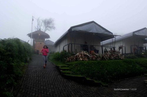 Ketika bangun di keesokan harinya, aku memutuskan untuk jogging keliling di tengah kabut yang masih menyelimuti. Udara segar membuat pernafasan menjadi lega, namun lagi-lagi tanjakan memperlambat kecepatan lariku. Tapi asyik sekali berkeliling sendiri dalam balutan sweater dikelilingi oleh pemandangan yang indah. Walau tak ada teman yang menemani, staf-staf Trizara resort yang ditemui di jalan senantiasa ramah menyapa. Tak hanya di kawasan resorts, aku juga berkeliling sekitar desa dan menemukan aneka kebun, mulai dari selada, sawi, tomat, hingga kebun kacang panjang.