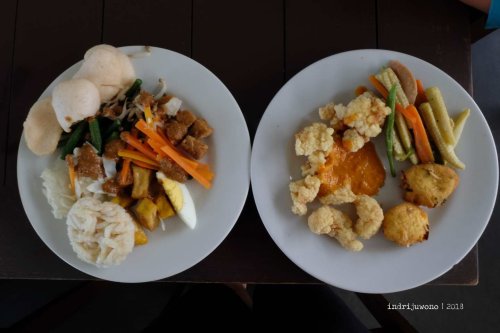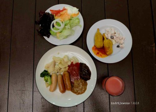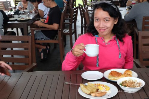 Di Indriya Cafe, dihifangkan makanan sesuai jamnya yang disajikan oleh Chef Asep. Makanannya enak, mengenyangkan dan sukses menggagalkan diet (yang baru berjalan dua minggu). Dengan udara dingin begini, siapa yang tahan untuk melaparkan diri? Waktu makan yang tersedia pun dipergunakan sebaik-baiknya untuk mencoba aneka jenis masakan.