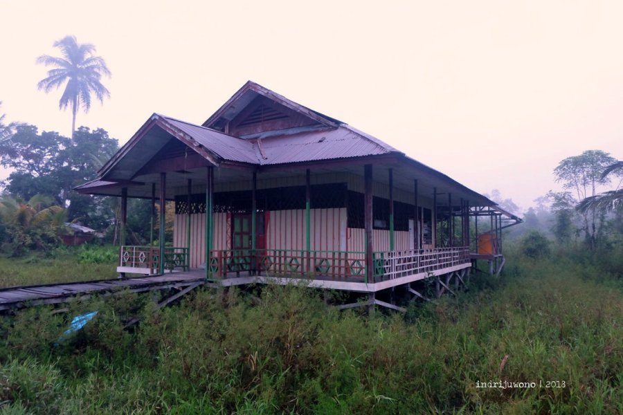 Tak lama kemudian, bapak-bapak mulai berlalu menuju sungai, melalui papan yang berderak-derak setiap saat, juga harus berjalan hati-hati supaya tidak salah langkah pada bagian paku yang sudah lepas. Satu sisi desa yang melayang di atas tanah, ditingkahi babi-babi yang mulai mondar-mandir, menunggu sisa-sisa makanan dari rumah panggung.