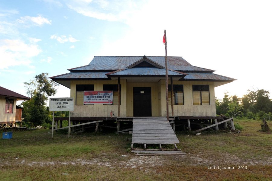 Aku teringat pertama kali jatuh cinta pada Kolf Braza, adalah ketika pagi menyapa usai beristirahat setelah perjalanan panjang dari Agats. Kabut dan embun menyapa dari pucuk-pucuk pohon sagu, yang siluetnya memberikan dimensi kala mengedarkan pandangan mata. Udara dingin menggigit kulit, dengan semburat kebiruan di kejauhan, sementara burung-burung bersahutan menyambut pagi.