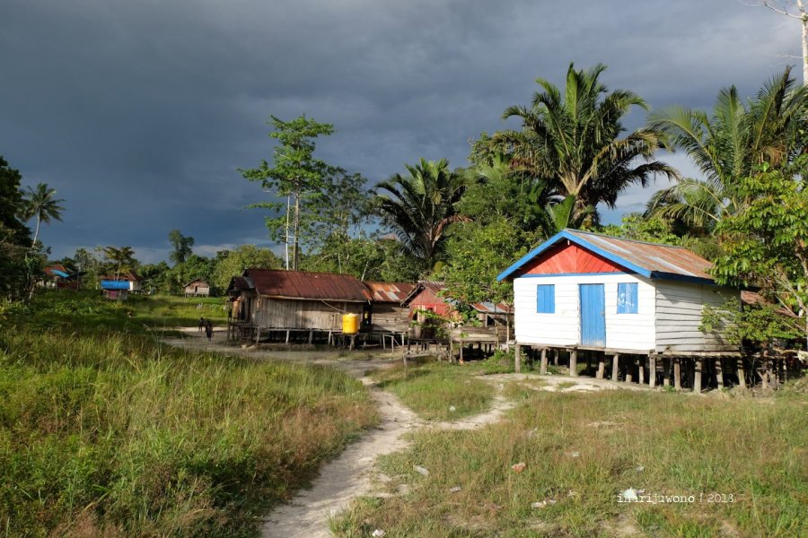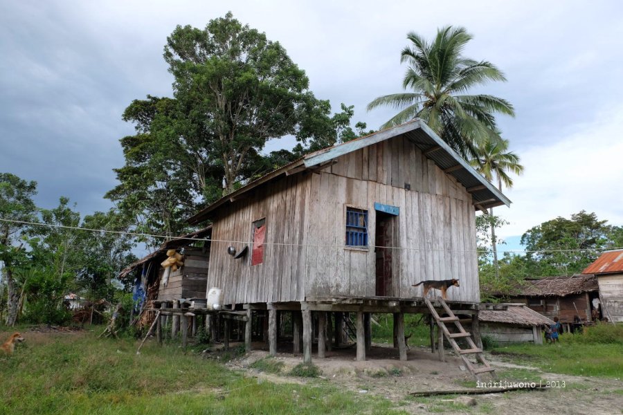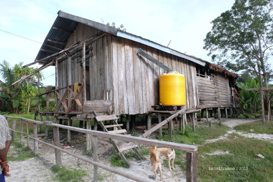 Rumah-rumah berdiri di atas tonggak dengan bentuk persegi empat, lengkap dengan beranda tempat mereka bercengkerama. Anak-anak kecil, sebagian berbaju namun yang kecil-kecil telanjang saja berlari-lari kecil di bawahnya. Beberapa orang sudah pulang dari hutan dan duduk-duduk seperti mengawasi kami yang baru datang.