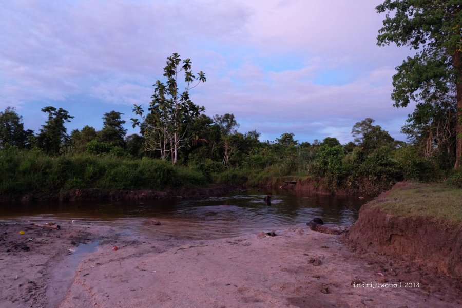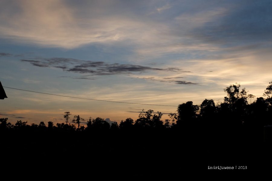 Mungkin hal kedua yang membuatku jatuh cinta adalah senjanya. Semburat langit mulai dari berwarna kemerahan di balik awan, perlahan turun ke garis cakrawala yang tenggelam di balik hutan-hutan sagu, pisang, singkong, atau apa pun hasil bumi yang disediakan alam untuk menghidupi masyarakat Papua di sini.