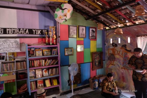Selain berjalan-jalan berkeliling dan foto-foto, kita bisa juga mampir Mranggen Gallery yang berisi berbagai hasil karya dari anak-anak muda komunitas Mranggen, perpustakaan untuk adik-adik membaca buku. Ruangan ini cukup luas dan juga dilengkapi dengan toilet dan kipas angin sehingga berlama-lama di dalamnya masih terasa nyaman.
