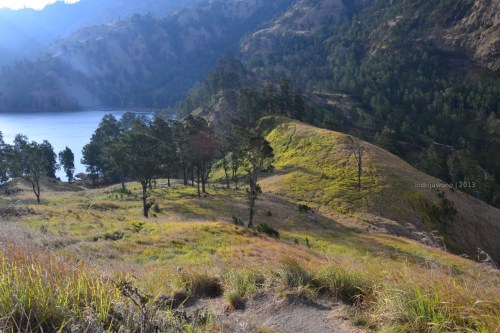Tempat favoritku di Rinjani adalah Danau Segara Anak yang dicapai sekitar 3 jam dari Plawangan Sembalun yang menjadi kaldera gunung dengan airnya yang segar serta ikan-ikan yang bisa dipancing dan dijadikan lauk makan malam. Memandang bintang di tepi danau adalah hal yang mungkin membosankan tapi ingin dilalui sepanjang malam. Apalagi sumber air panasnya yang membebaskan dari rasa kedinginan, sekaligus pereda lelah dari pendakian yang panjang.