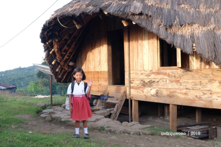 Setiba di pertigaan Todo, aku turun dan menunggu dijemput oleh Bang Eman, suami Kak Yoyan yang masih bertugas di Puskesmas Todo. Bersama-sama ke rumah orang tua mereka, ternyata aku sudah disiapkan makan siang berupa rabuk khas Manggarai yang terbuat dari sagu. Pertama mencobanya memang rasanya agak bagaimana, tapi ternyata enak juga. Rumah Pak Rofinus dan Ibu Vero ini yang menjadi tempat tinggalku malam ini, sembari aku melihat-lihat Mbaru Niang yang beberapa tahun lalu direnovasi oleh pemerintah NTT. Diantar anak-anak mereka yang terkecil, Niang Todo mudah dicapai dengan berjalan kaki dari rumah.