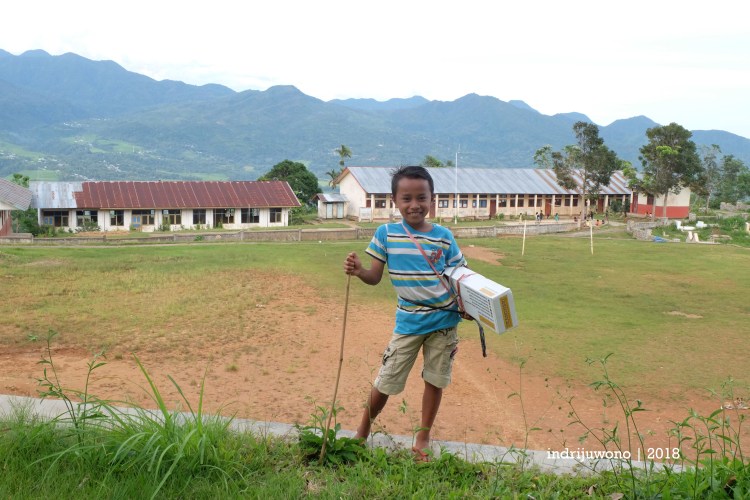 Aku melompat naik ke otokol yang tiba dengan membunyikan musiknya keras-keras sekitar sepuluh menit kemudian. Sebenarnya naik angkutan umum ini karena masalah kepraktisan saja, karena kalau naik ojek sepertinya tidak bisa membawa keseluruhan barang ini, sementara kalau naik otokol walaupun beramai-ramai, namun tinggal duduk manis. Dua orang gadis yang duduk di sebelahku antusias mengajak mengobrol dalam perjalanan satu jam ke depan itu. Walaupun mengobrolnya harus sambil teriak-teriak mengalahkan suara musik, tapi pemandangan lembah kiri kanan yang indah bisa mengalihkan suasana di dalam. Beberapa kali otokol berhenti menurunkan bahan bangunan seperti semen, besi, seng atap yang sepertinya dipesan oleh penduduk desa di sepanjang jalan dari kota Ruteng.