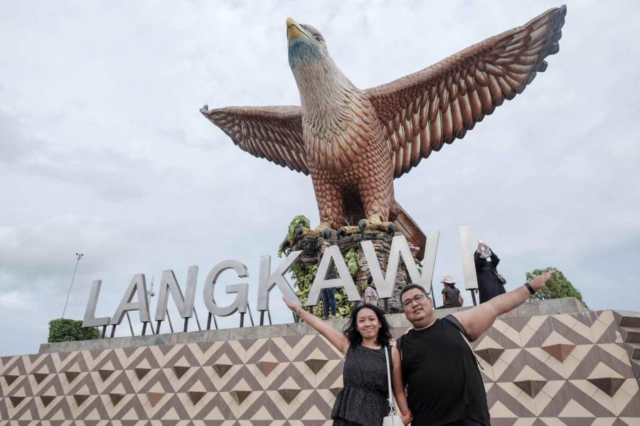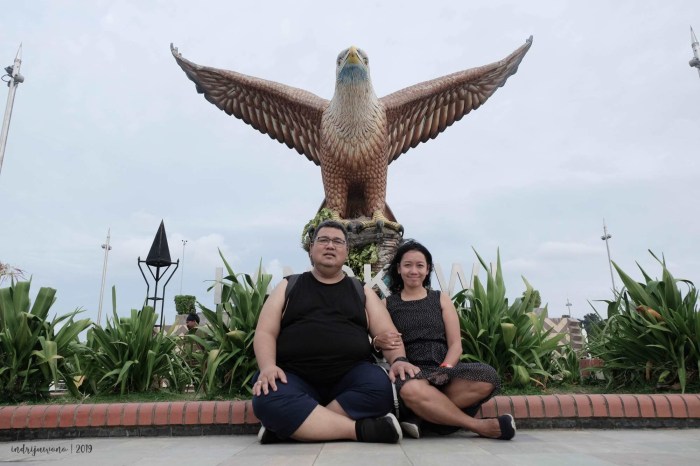 Patung Elang ini yang menjadi simbol Pulau Langkawi, adalah titik teramai di mana banyak sekali yang menghabiskan waktu untuk berfoto-foto di sini. Selain di bawahnya, tentu harus agak berjarak supaya berhasil mengabadikan. Cukup banyak juga yang menghabiskan sore di sana, sembari menunggu matahari terbenam. Dari tepinya bisa dilihat pelabuhan Kuah Jetty, yang melabuhkan kapal-kapal dari Penang atau Perlis.