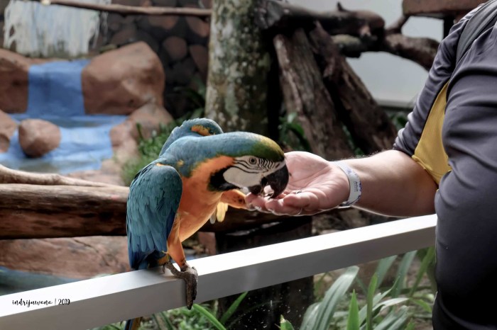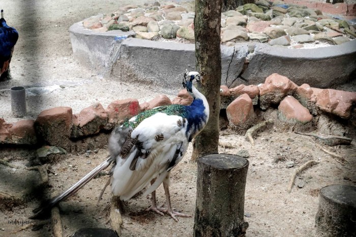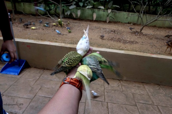 Berdasarkan arahan dari mbak-mbak resepsionis, kami menuju Langkawi Wildlife Park. Sebelum masuk kami membeli tiket dan makanan binatang dalam kantong kecil. Aneka unggas yang cantik-cantik yang berkeliaran sembari bisa diberi makan. Agak takut-takut juga ngasih makan di tangan nanti dipatuk-patuk gitu. Tapi kalau makanan yang dilempar-lempar, tentu lebih mudah.