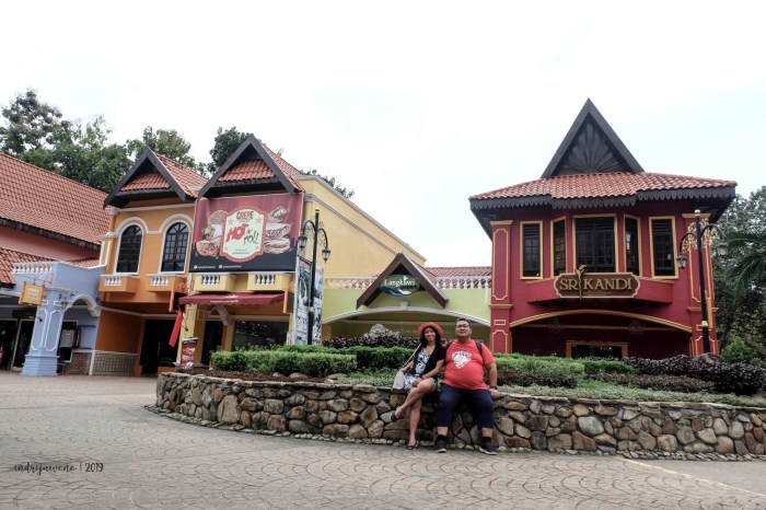Hah, rupanya hujan yang tadi di pantai sekarang berpindah ke area cable car. Nggak tahu juga nih badainya selesai kapan. Mau memaksakan naik ke atas juga rasanya pasti hujan dan nggak asyik. Iyaa, apa asyiknya hujan geluduk dan dirimu bakal terjebak di dalam cable car. Daripada memaksakan beli tiket seharga RM 82.5 per orang itu (termasuk sky dome dan lainnya namun belum termasuk Skyglide RM 16 untuk sampai di puncak Skybridge), mendingan kami jalan-jalan seputar sini saja. Pupuslah harapan berfoto di ujung skybridge demi konten instagram.