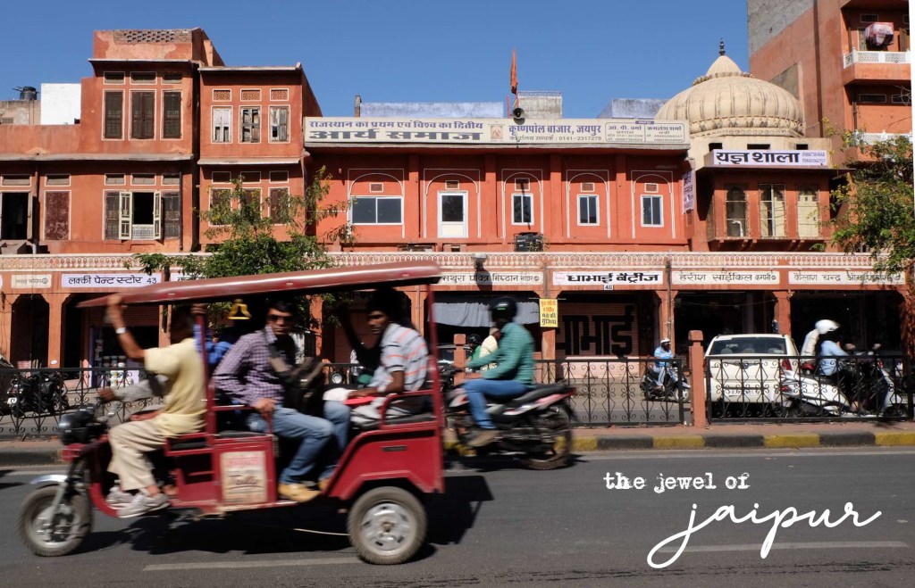 Usai sarapan, kami naik tuktuk untuk berkeliling Pink City, yang merupakan daya tarik utama Jaipur. Ditempuh kurang lebih 20 menit naik tuktuk, kami tiba di gerbang utama Pink City ini yang merupakan kota lama dari Jaipur. Kabarnya, kota ini mulai dicat merah muda pada tahun 1876 untuk menyambut kedatangan Pangeran Inggris, Albert Edward. Sebagai simbol selamat datang, dianggap lebih bersahabat dan mencerminkan penduduk kota yang ramah.