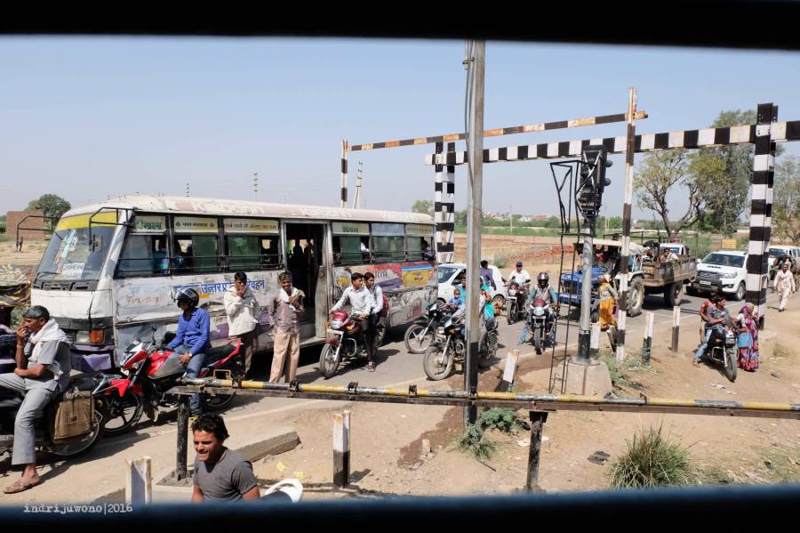 Panas terik menerpa ketika kami keluar dari kereta yang membawa dari Agra ke Jaipur. Walaupun perjalanannya hanya lima jam, tapi panas teriknya memang membuat rasanya semua uap di badan mengangkasa. Di luar hamparan padi dan ilalang, tanah kecoklatan, atap datar kelabu meyakinkan bahwa suhu udara pasti di atas 35 derajat Celcius.
