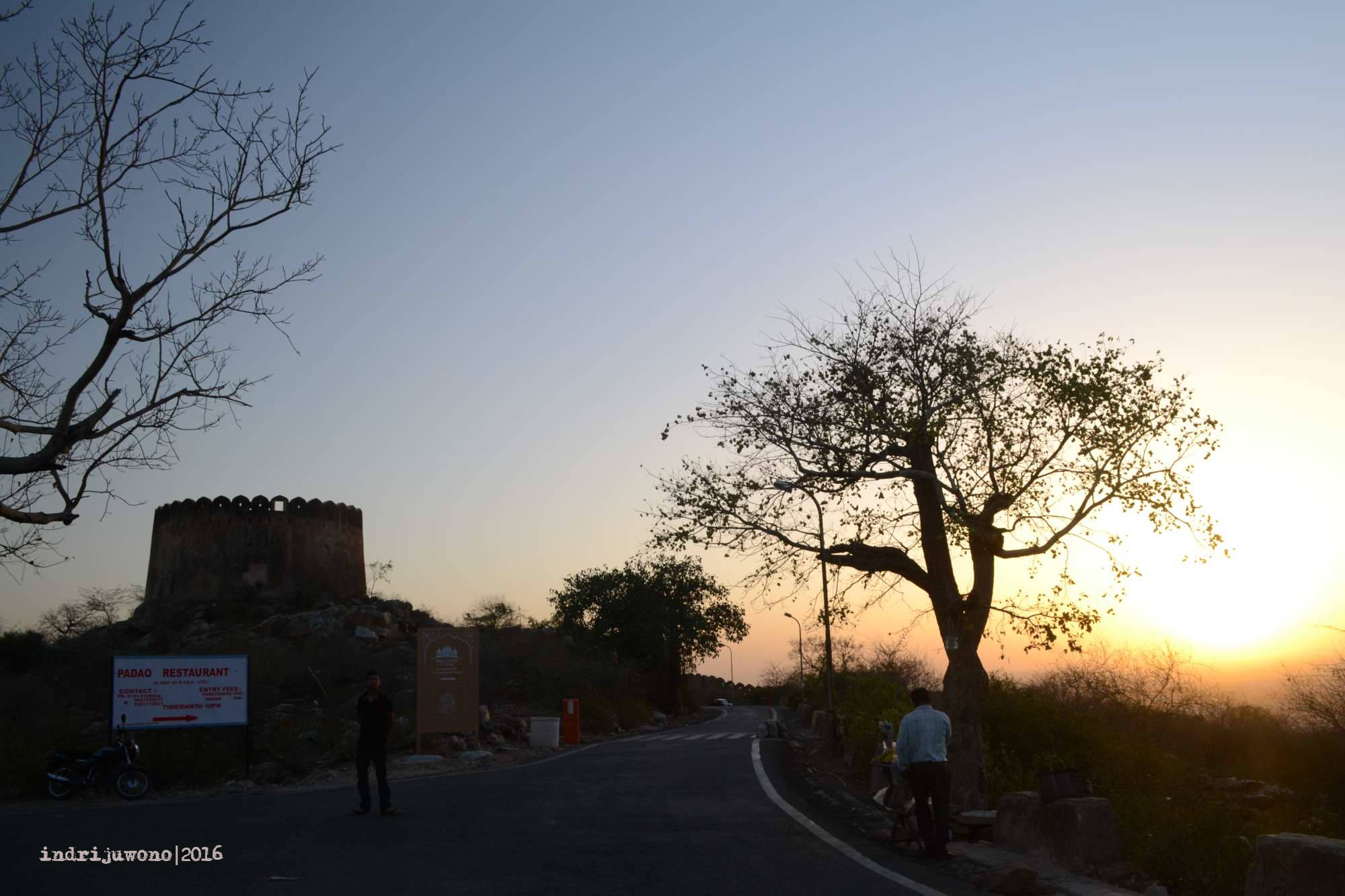 Ketika supir tuktuk menawarkan untuk mendaki bukit dan melihat kota dari ketinggian, tentu saja kami mau, walaupun tidak yakin apakah tuktuk ini bisa sampai atas atau tidak. Di perjalanan malah kami ketemu Jal Mahal atau istana air yang tidak sempat kami mampiri karena keterbatasan waktu. Untungnya tuktuk melewati tanjakan dengan mulus hingga puncak Nahargarh Fort yang ternyata, sudah tutup!
