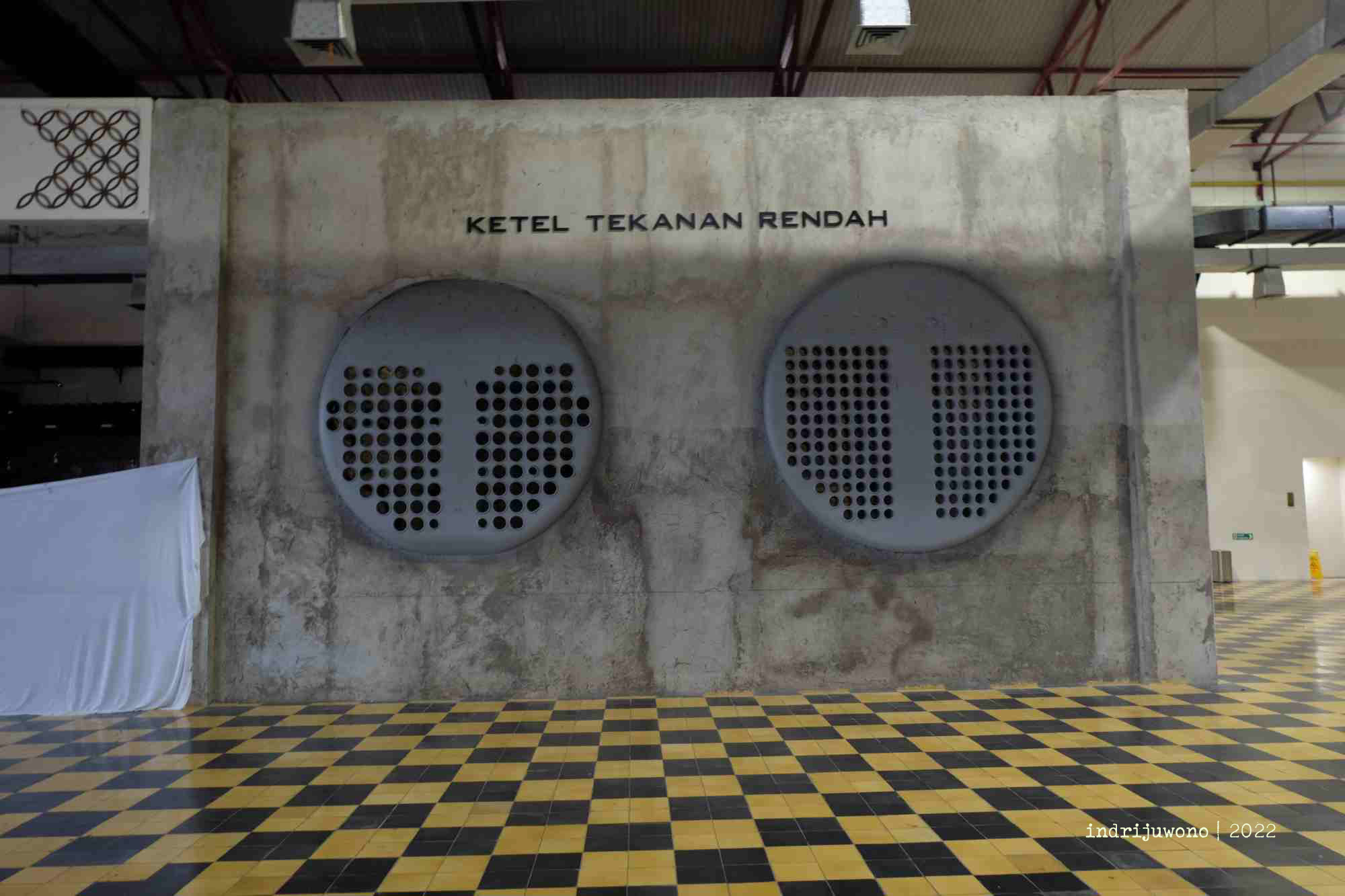Dengan mesin uap sebagai pendorong, tentu dibutuhkan ruang yang tinggi sehingga udara panas tidak menjadi pengap di bawah. Detil tiang-tiang yang menjadi penyangga portal bangunan setiap enam meter, berdiri kokoh dan kini dicat ulang untuk ketahanan materialnya.