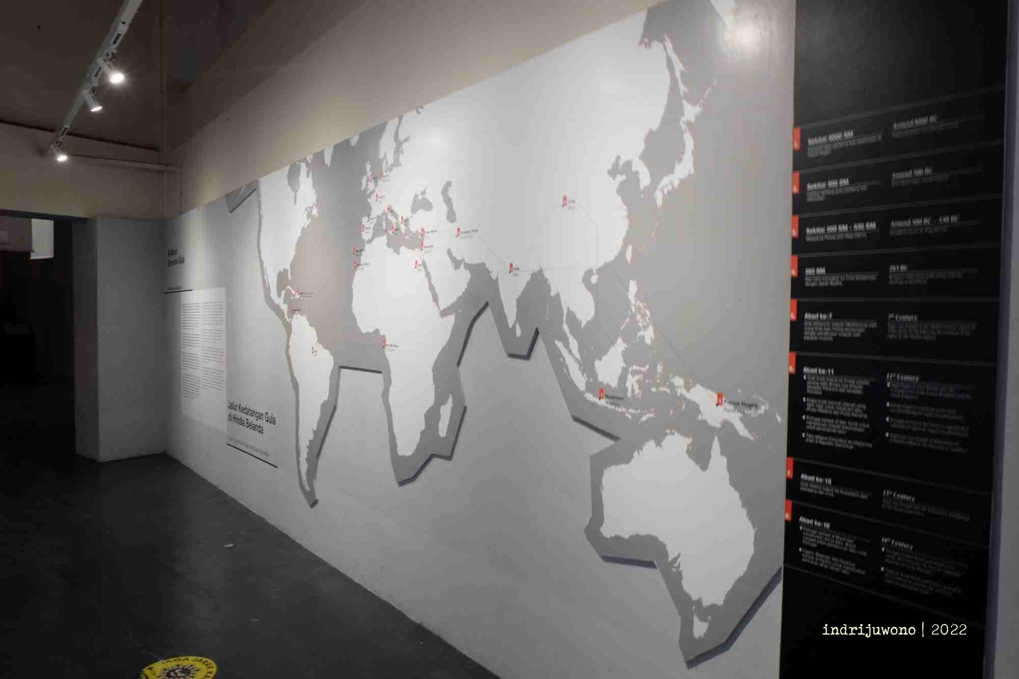 Rupanya, mesin besar itu hanyalah kejutan eksplorasi, karena ketika masuk ruangan sesudahnya, banyak sekali infografis sejarah gula di Indonesia yang dituturkan dengan padat dan menarik. Lorong penuh cerita ini amat menarik dengan visual cahaya yang menyedot perhatian untuk tekun mengasah ilmu.