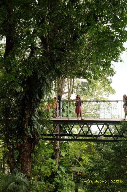 Kira-kira 20 menit kereta sudah sampai di stasiun atas dan penumpang berhamburan turun. Kami berjalan pada jalur-jalur kanopi yang rasanya melayang di atas tanah di bawah naungan pohon-pohon besar.