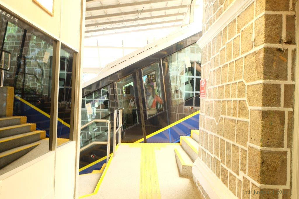 Karena menaiki bukit ini curam, maka funicular train ini menjadi pilihan sistem transportasi yang menghubungkan area bawah hingga puncak bukit tempat berbagai titik pandang berada. Masih ingat dengan Kereta gantung di Genting yang juga menaiki bukit? Kalau kereta gantung jalurnya dengan kabel, funicular train ini tetap berjalan di rel khusus yang menjaga jalurnya.
