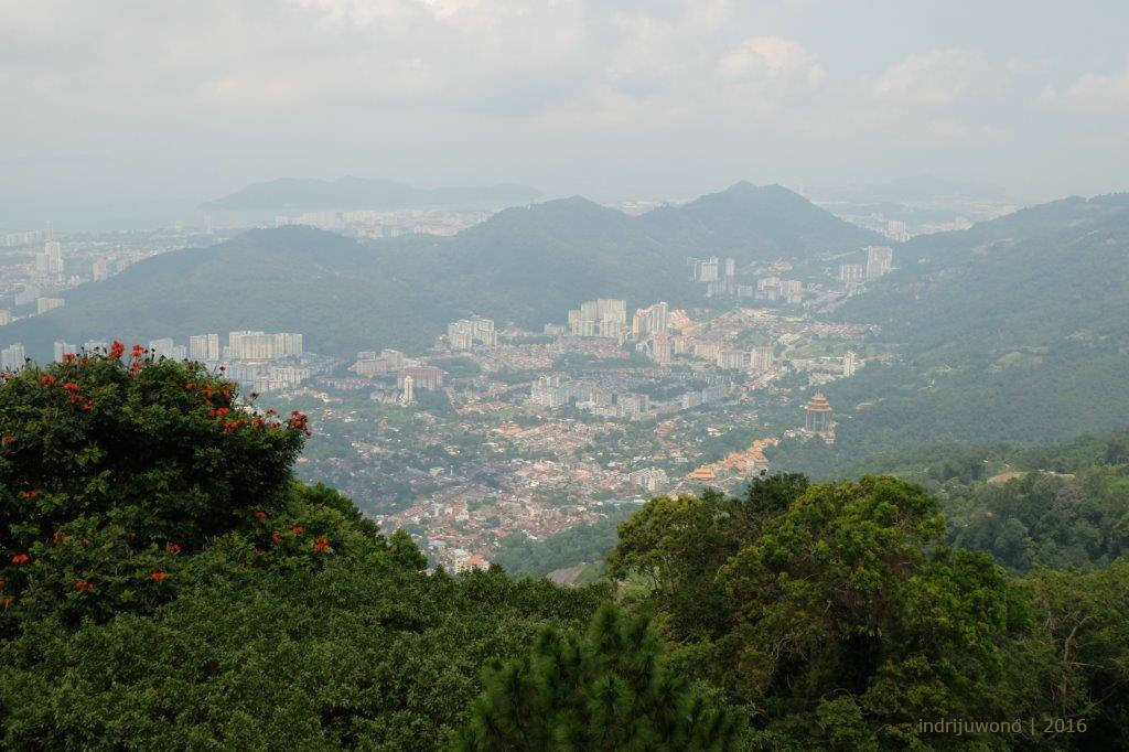 Dari atas, kami bisa melihat pemandangan Pulau Pinang ke arah Timur hingga ferry penyeberangan ke Butterworth dan daratan Semenanjung Malaka. Apalagi di siang hari cerah begitu, jelas sekali yang dilihat sampai jauh.
