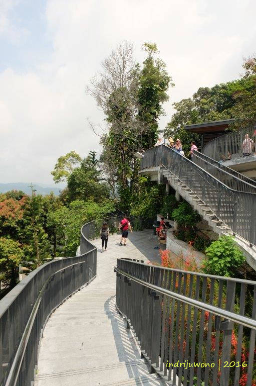 Kira-kira 20 menit kereta sudah sampai di stasiun atas dan penumpang berhamburan turun. Kami berjalan pada jalur-jalur kanopi yang rasanya melayang di atas tanah di bawah naungan pohon-pohon besar.