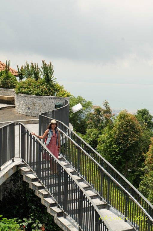 Dari atas, kami bisa melihat pemandangan Pulau Pinang ke arah Timur hingga ferry penyeberangan ke Butterworth dan daratan Semenanjung Malaka. Apalagi di siang hari cerah begitu, jelas sekali yang dilihat sampai jauh.