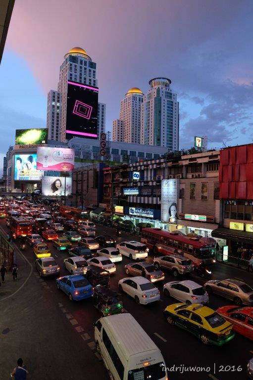 Bangkok 2016, dulu sih Jakarta masih nggak begini, sekarang makin mirip deh. Ramainya, macetnya, jalanan yang susun tiga, senja di antara gedung-gedung bertingkat.