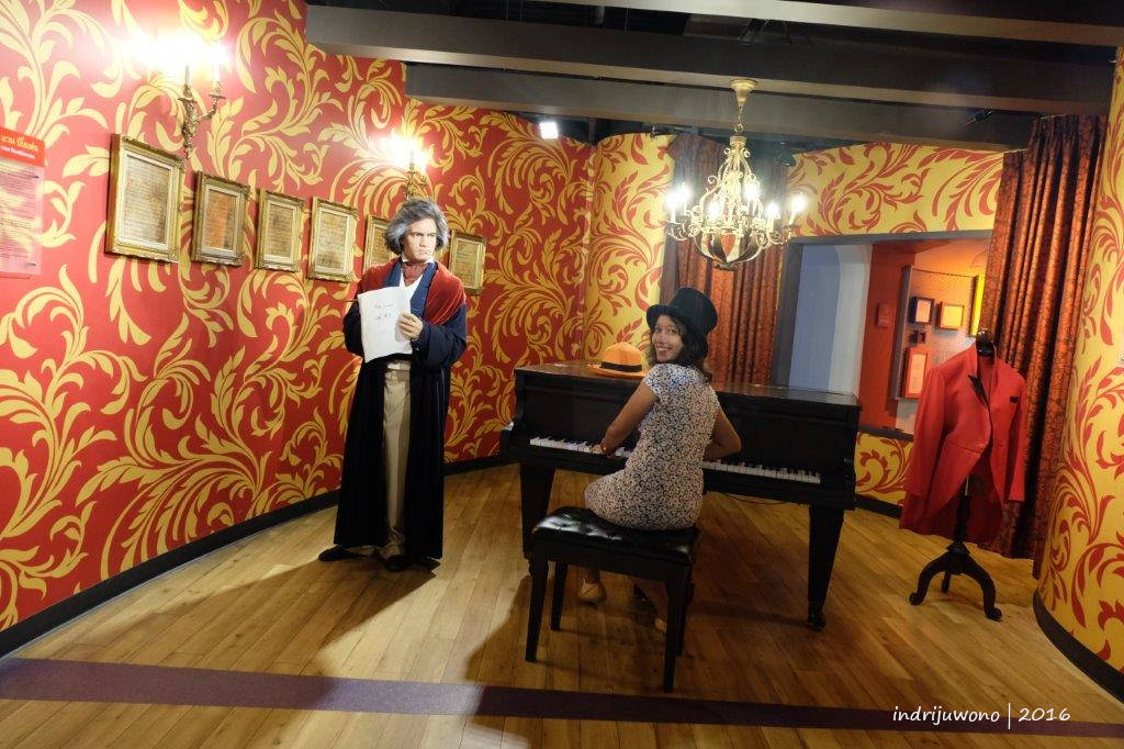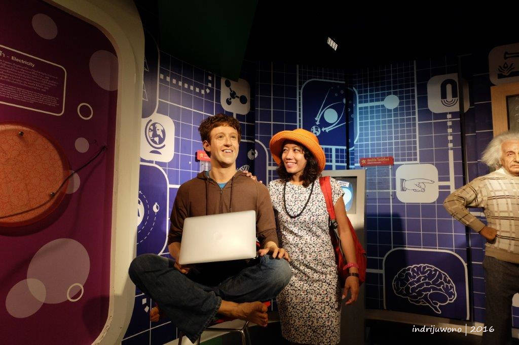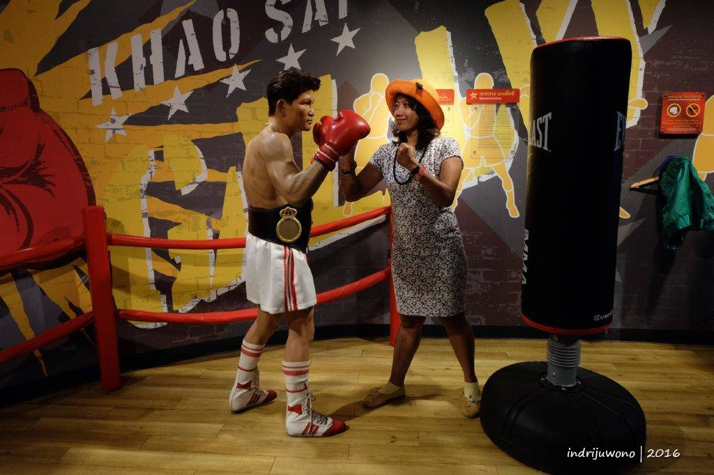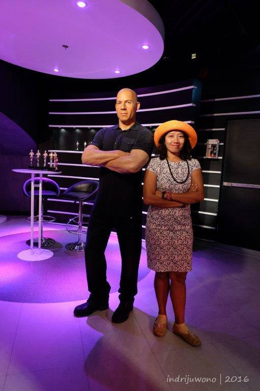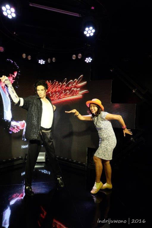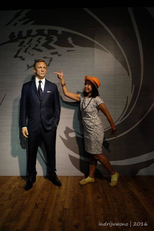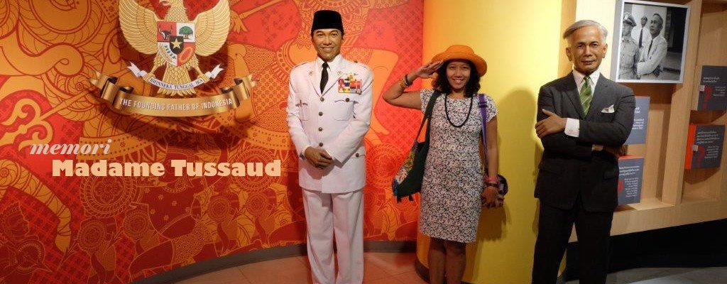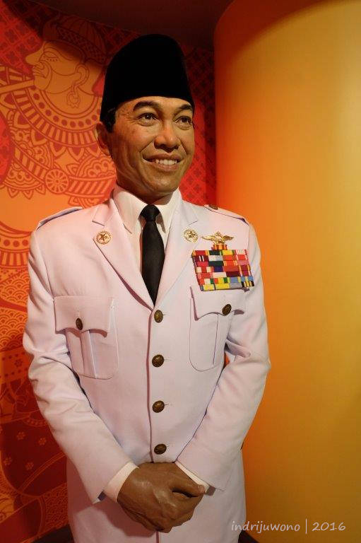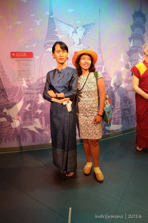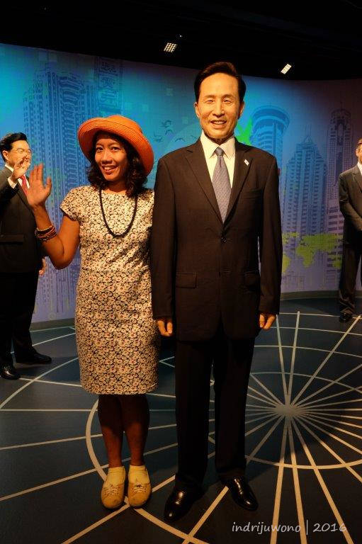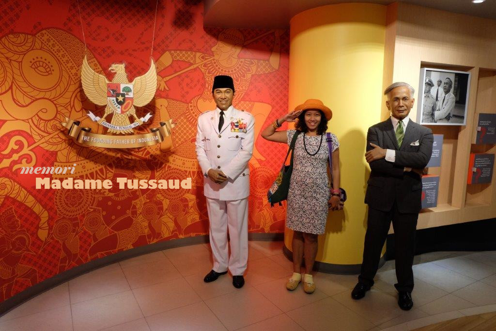 Tak dinyana, dia ikut ngintil kami juga ke museum lilin terkenal itu yang pada pintu masuknya saja kami bertemu dengan Soekarno. Ya Allah, ganteng banget bapak Negara ini. Lalu kami juga ketemu Lee Kuan Yew, Lady Diana, King Bhumibol Adulyadej, dan negarawan yang lain. Aku, Auls, Despin pun semangat untuk berputar-putar di dalam museum ini.