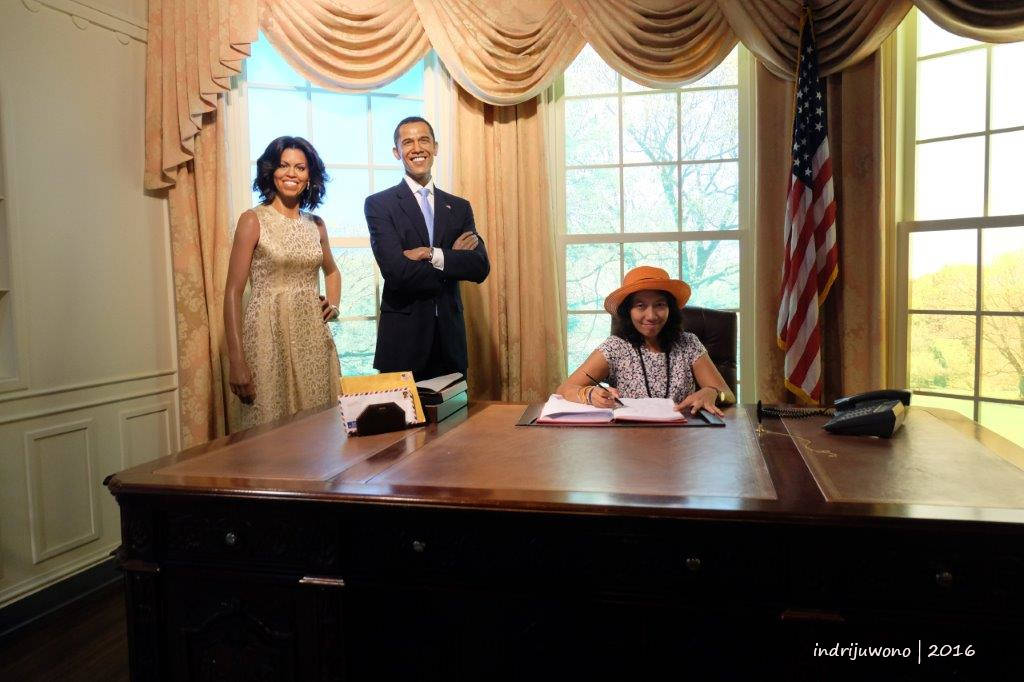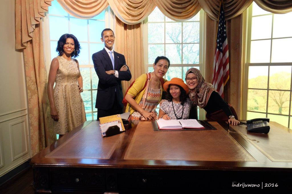 Sebentar kami juga tidak lupa mampir gedung putih dan bertemu Barrack & Michelle Obama yang tersenyum ramah. Lhaa, ini malah jadinya Despin yang happy banget ketemu idola-idola ini.