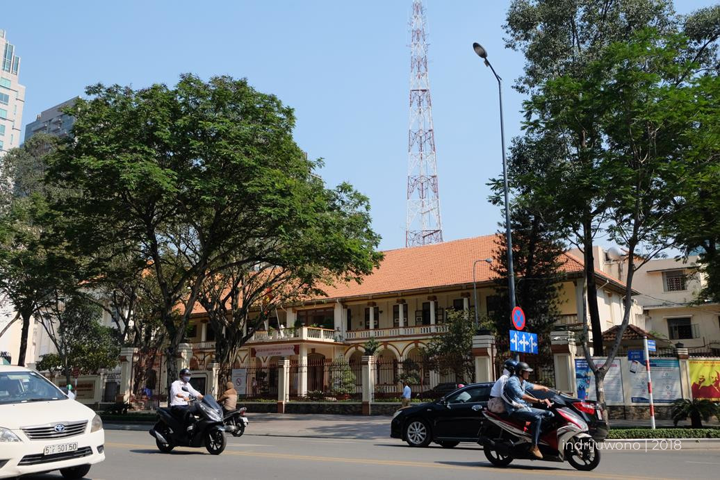 Yang paling menantang jalan kaki di HCMC ini adalah motornya! Hampir mirip di Jakarta, motor lalu lalang banyaknya sehingga menyeberang agak susah. Untunglah katanya cukup teduh dengan pepohonan di mana-mana sehingga nyaman berjalan kaki di trotoar. Setelah cukup lumayan jalan kakinya, ternyata depan Independence Palace tutup karena istirahat, dan baru buka lagi jam 1.