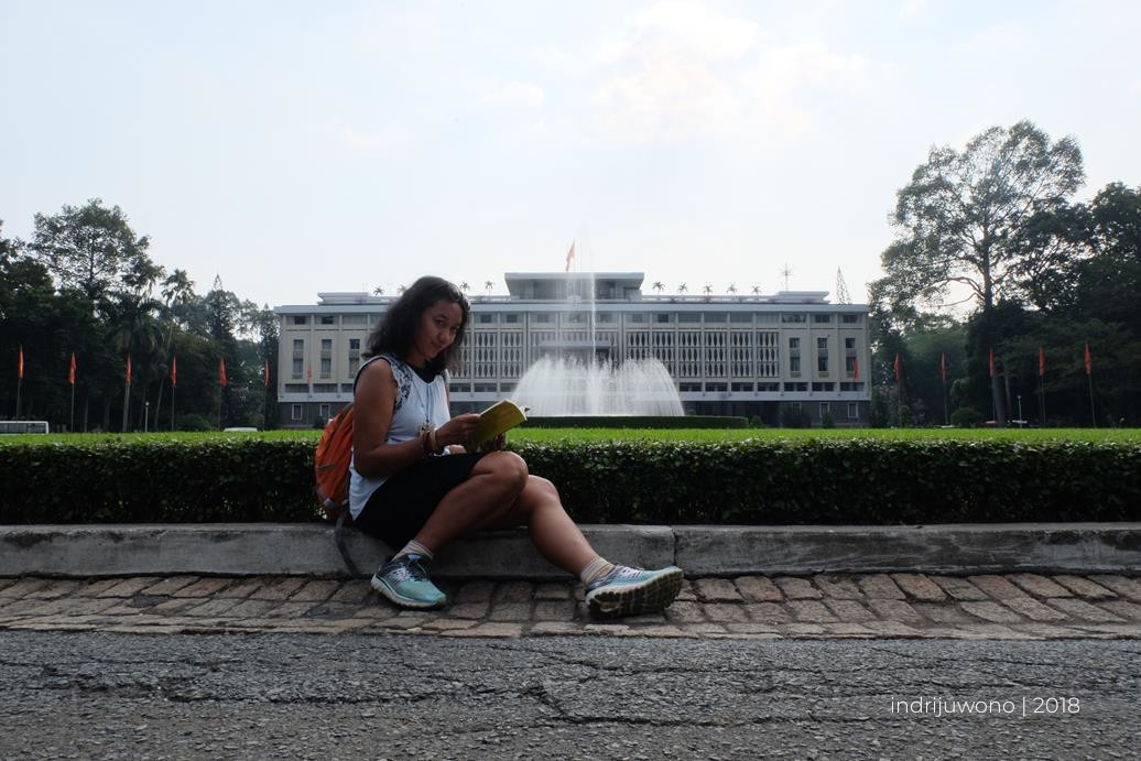 Sekitar jam 9 pagi aku mulai berjalan menyisir jalan raya yang cukup ramai hingga melintasi taman Tao Dan Park aku lanjut berjalan ke Independence Palace di tengah kota. Di sini nggak ada pedagang kaki lima, atau kacang rebus menawarkan dagangannya. Suasananya pun rimbun dan teduh sehingga nyaman saja berjalan di bawah naungan pepohonan itu.