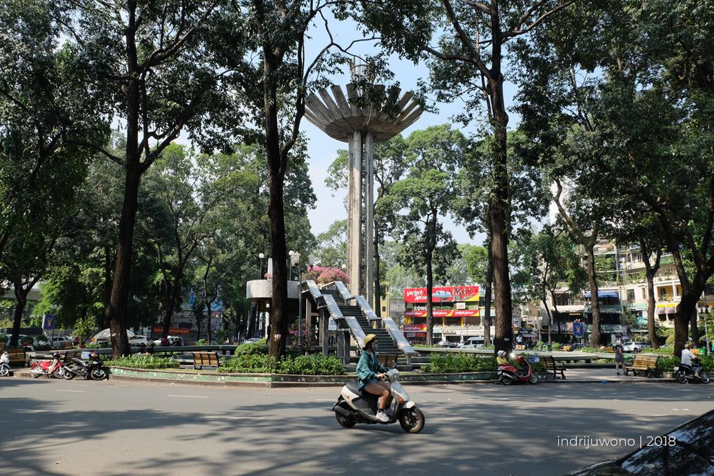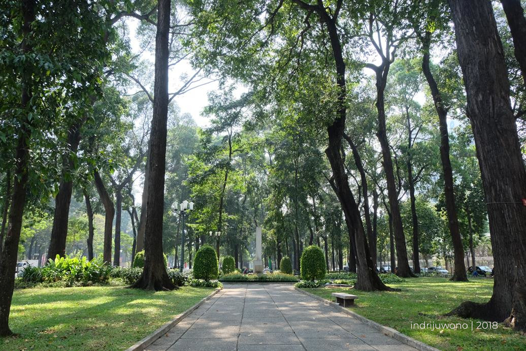 Ketika aku sampai di luar, eh mas-mas Vietnam ojek itu sudah nggak ada, malah aku disamperin yang lain. Jadi aku memilih untuk berkeliling sekitar menunggu jamnya Independence Palace buka. Udara terasa adem karena memang di kawasan pusat kota ini penuh dengan pohon-pohon berusia ratusan tahun yang membuat suasana terasa teduh. Mirip dengan jalan-jalan di Bandung rasanya. Nggak heran karena kota ini pun dulu jajahan Perancis sehingga suasana tamannya mirip dengan Eropa. Mengingatkan pada Paris van Java, kan?