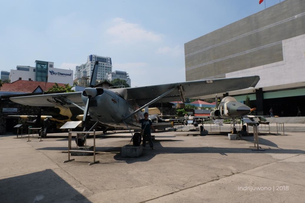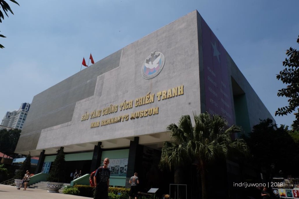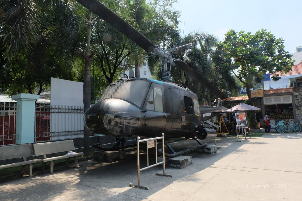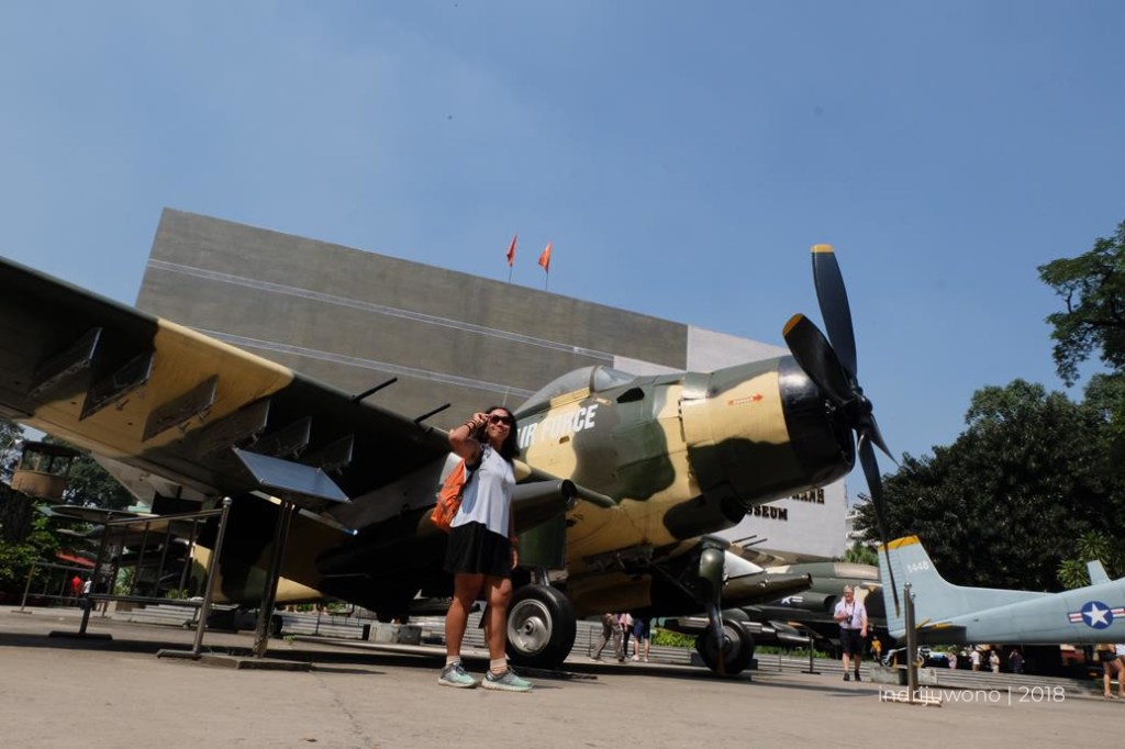 “I’ll wait here,” katanya setiba di gerbang War Remnants Museum Bảo tàng Chứng tích Chiến tranh, janji untuk mengantarkan kembali ke Independence Museum. Koleksi museum militer ini lumayan keren, di halamannya saja ada pesawat tempur dan helicopter. Bercerita tentang perang Vietnam di tahun 1975, di museum ini juga dipamerkan guillotine dan ruang penjara bawah tanah yang rendah dan membuat orang harus meringkuk di dalamnya.